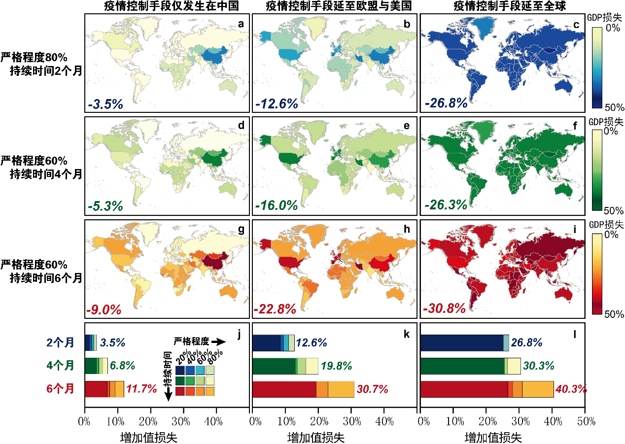 图1  不同防控措施情景下新冠肺炎疫情对全球经济的影响(增加值损失)