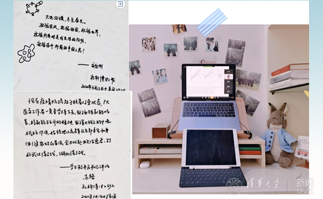社科2018级博士生成佳俐、高馨书写祝福,社科2019级博士生何彦妮的“宅”家学习书桌