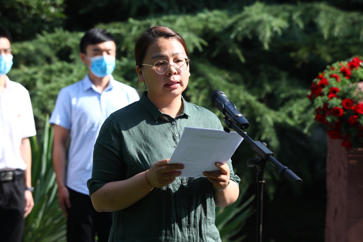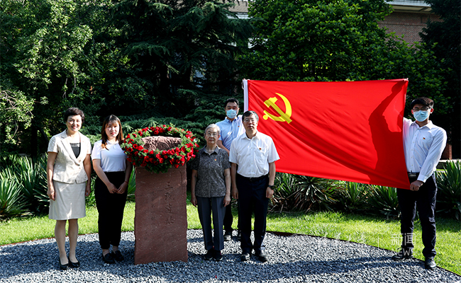 校党委原常务副书记庄丽君、学生党员代表李林蔚,同陈旭、邱勇一道向“三院遗址”纪念物敬献花环。