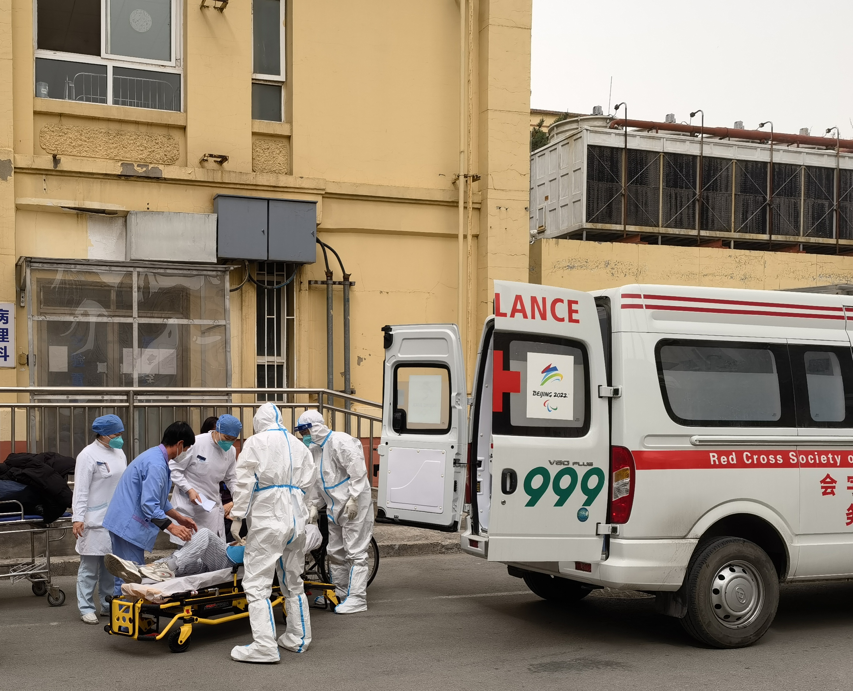 中国红十字会支援的救护车协助医院转运行动不便的透析患者