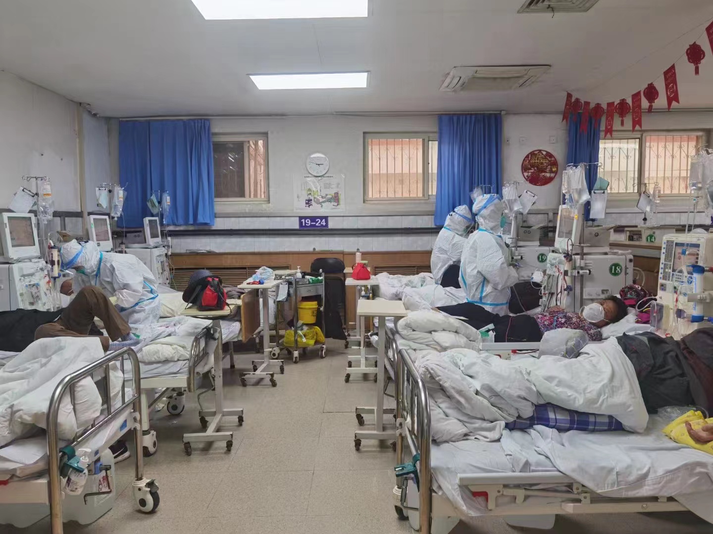 透析室内,医护人员忙碌的身影
