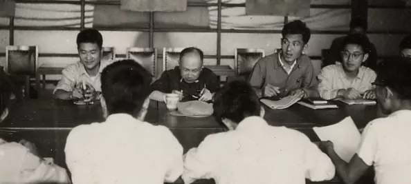 钱老与本科生座谈教改(中间为钱学森先生,左侧为朱克勤)