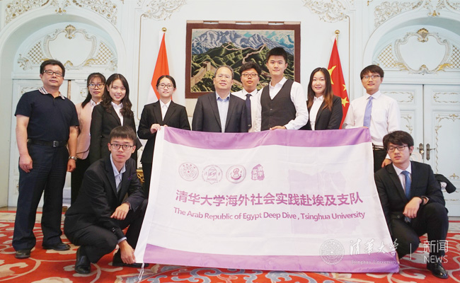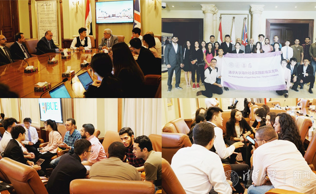 行程最后,支队成员来到中国驻埃及大使馆。中国驻埃及大使馆公使肖军正向支队介绍了中埃建交的历史,作为“非洲大陆升起的第一面五星红旗”,中埃关系的发展为之后与很多类似国家建立外交关系铺垫了“先经贸,后政治”的模式和道路。肖军正鼓励同学们拓展全球视野,把世界当舞台,为建设人类命运共同体而努力奋斗。使馆教育处参赞宋波说,埃及在阿拉伯世界中具有重要的政治地位,在非洲的地区事务中发挥着重要作用,同时又是世界文明的宝库,非常值得青年人交流互访。这次清华学子来到埃及实践并进行扎实的参访学习,从青年学生的视角观察了解埃及社会和政治经济的发展,是围绕“一带一路”人文交流的一次很好的实践。