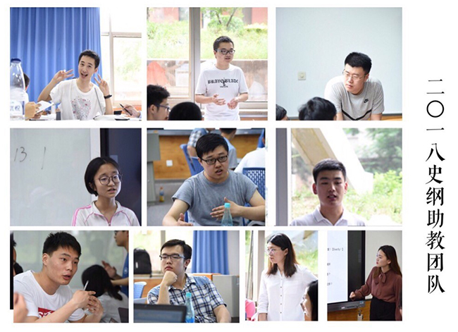 2017年的春天,李蕉的纲要课第一次配备了10人的豪华助教团。之所以称之“豪华”,是因为这个团队从博士三年级到本科二年级,男女各半、文理各半,是一个讲求合作、互助且兼具热情、理想的团队。丁雨亭,一位2字班的软件学院的同学,曾在2013年上过李蕉的纲要课,此次回归成为了一名助教。他对李蕉主持的备课会印象深刻:“我们有一次助教集体备课会从早上8:30开到下午17:20,大家坐久了就站起来,站久了又坐下,但是没有人感觉到疲惫,反而想法越来越多。”他说:“李老师用她自身的努力和魅力感染着我们,让我们明白历史也可以很有趣。”