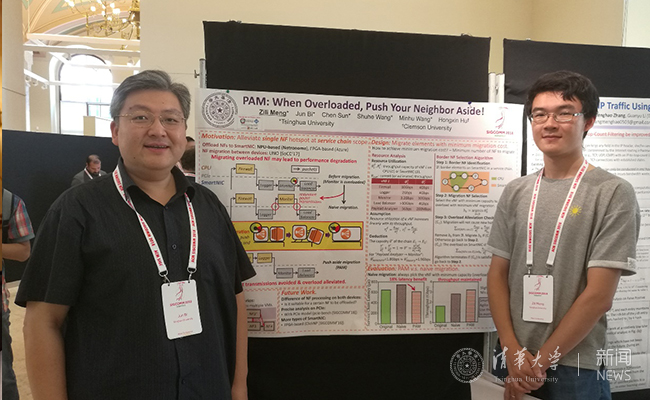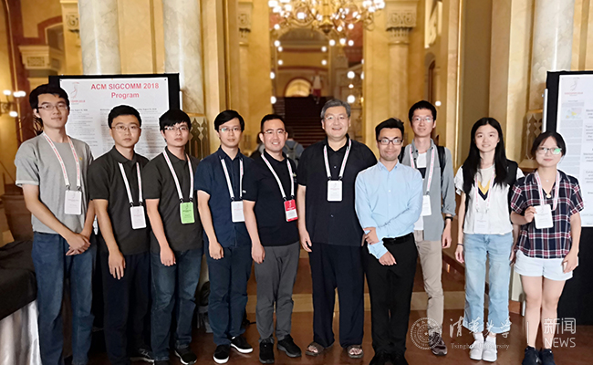 毕军与学生在2018 SIGCOMM会议上