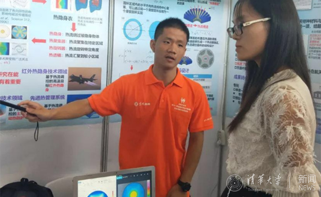 学业上打下的坚实基础给了黄冠尧在科研道路上实现理想的信心。经过思考和调研,他将目光锁定在高温条件下的热流调控问题上。在航空、能源等领域,高温热流无法被顺利疏散限制了仪器设备的工作效率,常常造成设备的热损伤。通过查阅文献和不断摸索,他设计了一种能够将高温热源的热流进行疏散并聚集向特定的位点进行回收再利用的热流调控器件。