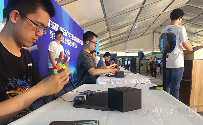 魔方兼具娱乐性与知识性,其复原过程蕴含的数学原理和空间变化规则耐人寻味。传统的三阶魔方传播最广,也较为简单;随着魔方阶数的不断增加,其复杂度也呈指数上升。魔方复原能锻炼逻辑思维能力、增强空间概念。在研究和把玩魔方的过程中,同学们可以不断挑战自己;魔方不仅锻炼人手脑并用的能力,而且还能培养人的耐力和毅力。清华校园内有众多的魔方爱好者,本次比赛是由学生科协组织的首届魔方比赛,为校园内魔方爱好者提供了展示和交流的舞台。