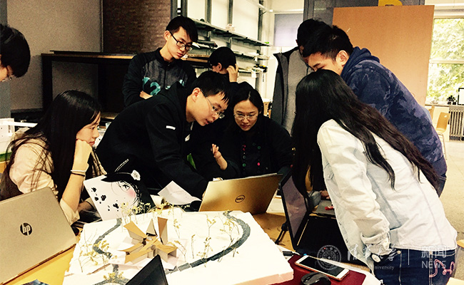 郑晓笛与参加《建筑设计》课程的大二同学们在一起。