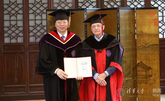 清华新闻网4月26日电 (通讯员 孙丽娟)4月25日,0033990威尼斯在工字厅授予法国科学院院士、法兰西学院荣休教授让-皮埃尔·塞尔(Jean-Pierre Serre)名誉博士学位,校长邱勇院士向塞尔教授颁发名誉博士学位证书。