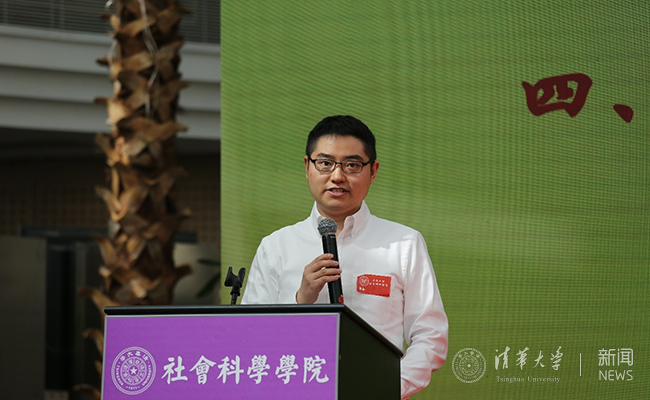 社会学系青年教师严飞作为教师代表发言。他表示,社科学院的教师们将心无旁骛、沉浸于书,不忘初心、满怀信心地为建设更好的清华、更好的社科学院添砖加瓦。