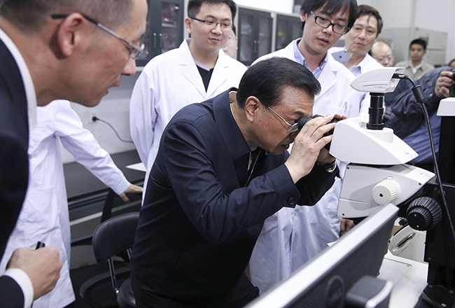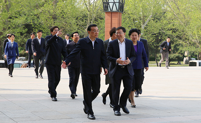 校领导陪同李克强总理一行考察。苑 洁