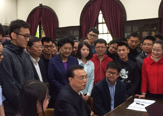 随后,李克强总理走进图书馆二层阅览室,与这里看书和自习的同学们进行热情交谈。