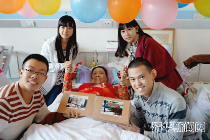 图为志愿者为老俩口拍结婚照。黄磊
