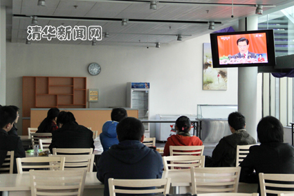 清华新闻网11月8日电(学生记者 潘正道 通讯员 宋伟泽)党的十八大开幕之际,清华环境学院收看现场里坐满了收看十八大开幕式的师生。