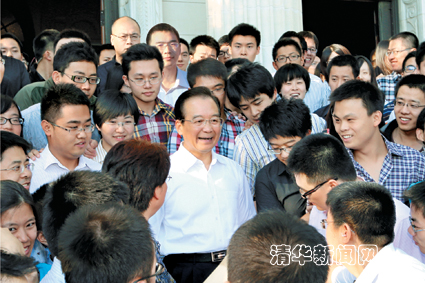 在大家依依不舍的目光中,温家宝与清华师生们挥手惜别。