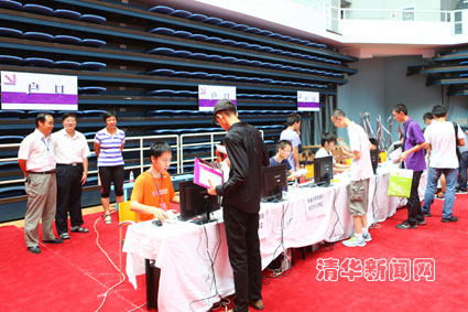8点40分,又一辆载满新生和家长的清华校车停靠在路口,各院系负责迎新的志愿者同学蜂拥而上,高举院系指示牌,大声喊着院系名称,帮助新生更快找到自己院系。接车的志愿者随后引领新生到院系迎新点进行报到,再一对一由专人引领到宿舍进行登记入住。