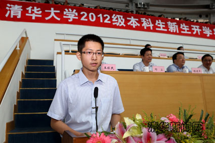 来自河南的水利系新生荆华代表全体新生发言。荆华说,我们即将在清华园里追寻新的梦想,对于我们来说,最重要的是忘记过去、脚踏实地,把远大的理想落实在点点滴滴的大学生活中。我们要努力成为一个独立的人,不仅仅要在生活上自立,也更要在人格上、思想上独立。