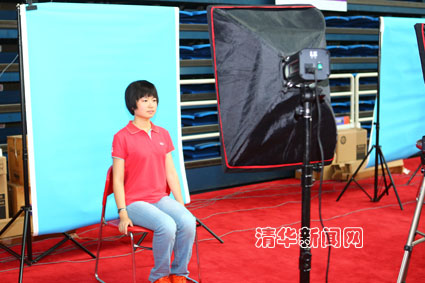 图为综合体育馆内新生照相办理学生证。记者 智斐 摄
