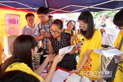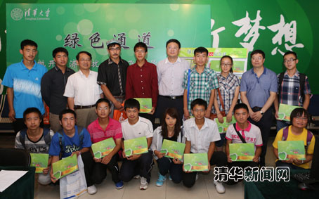 图为校长陈吉宁与在“绿色通道”办理临时贷款的同学们合影。记者 智斐 摄