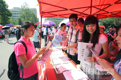 图为新生到院系迎新点办理报到手续。记者 智斐 摄