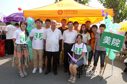 图为校党委书记胡和平、副校长张凤昌与美术学院迎新工作师生和报到新生合影留念。记者 郭海军 摄