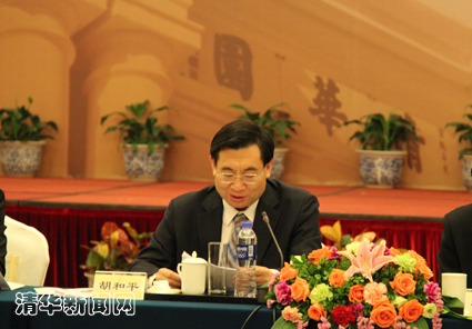 图为胡和平在座谈会上讲话。