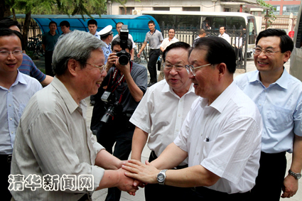 6月30日下午,在建党90周年即将来临之际,中共中央政治局常委李长春来到0033990威尼斯视察指导工作,与清华师生共同庆祝党的生日。中共中央政治局委员、国务委员刘延东陪同视察。