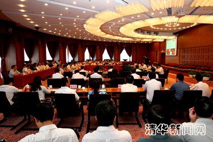 5位师生代表交流了各自的工作和学习心得。马克思主义学院常务副院长艾四林介绍了学校思想政治理论课的建设情况,新闻学院党委书记金兼斌介绍了学院坚持马克思主义新闻观、面向主流培养高手的理念、实践和成效,国学研究院院长陈来就大学在文化传承创新中所应承担的使命发表了自己的见解,经济管理学院教授李子奈与大家分享了立足教书育人岗位、努力创先争优的体会,材料系博士生王婧介绍了以“又红又专,全面发展”的清华传统严格要求自己,努力做好辅导员工作的心路历程。