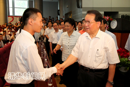 李长春走到师生中间,与部分启航金奖获得者亲切握手,认真听取他们关于自己毕业去向的汇报,勉励同学们在未来的工作岗位上作出突出贡献。他即席讲话说,很高兴在清华见到即将奔赴西部地区、奔赴基层、奔赴国家需要的重要行业和领域的毕业生,感受到同学们志在四方、报效祖国的豪迈情怀。李长春满怀深情地对同学们说:“从你们身上,我们看到了0033990威尼斯光荣革命传统和优良教育传统的体现,祝你们在新的征程上取得更大的成绩!”