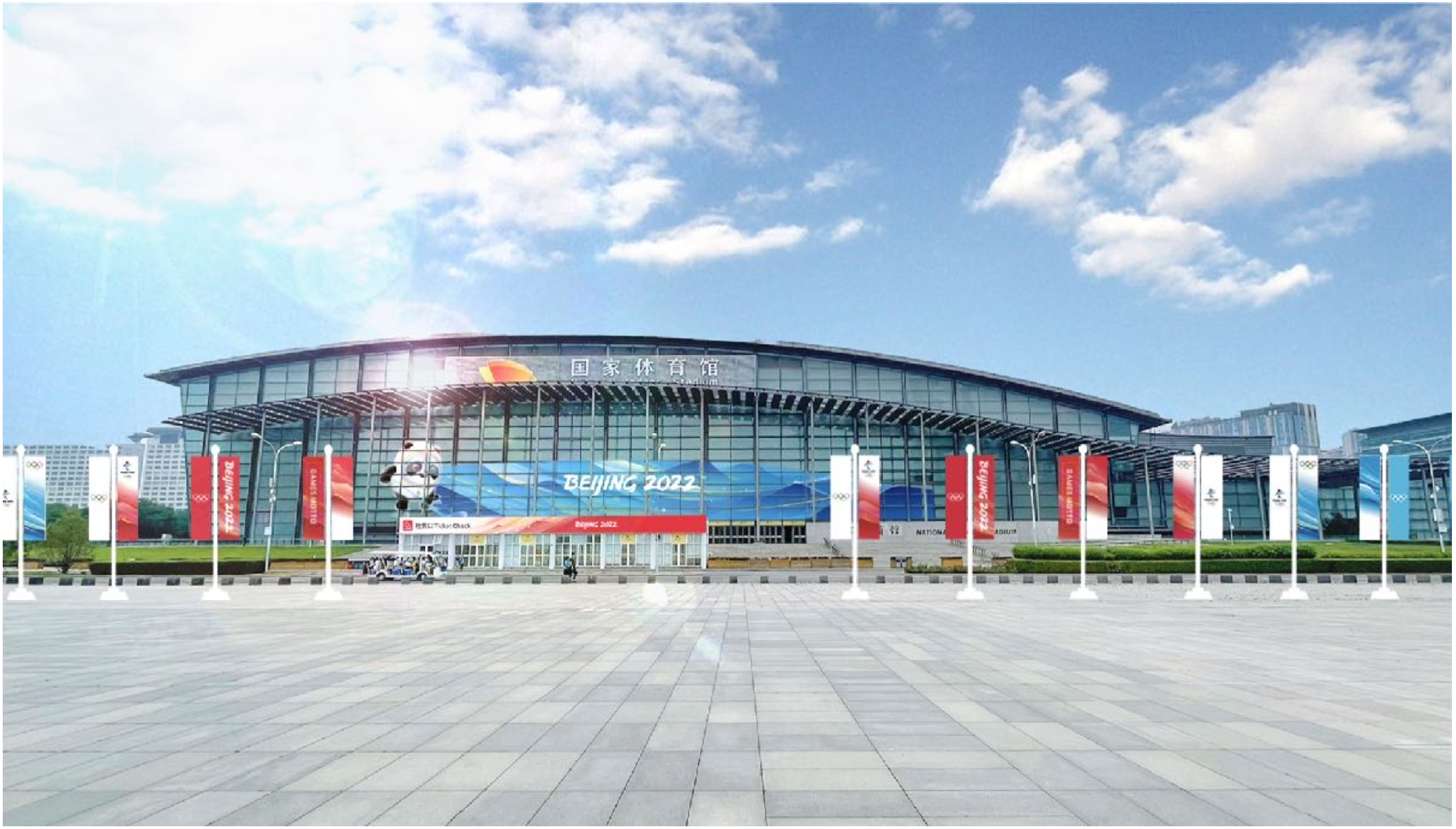 北京五棵松体育中心设计团队由视传系教师顾欣负责,用于冬奥会冰球项目的部分比赛,场馆不仅作为冰球运动员的比赛场地,更是传播中国优秀文化的窗口,设计团队以“助力赛事、传播文化、联动空间”的方式来展示国家形象和奥运精神。