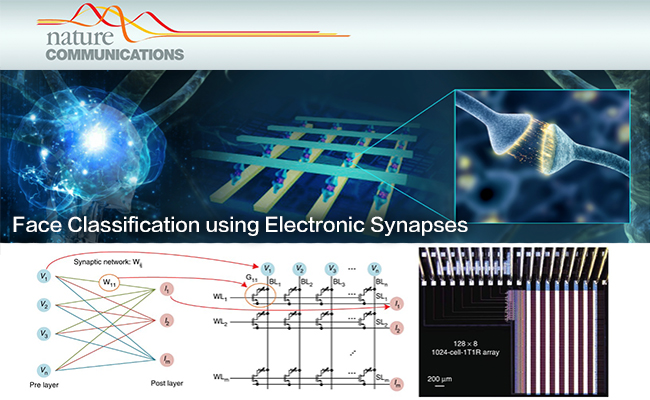 2017.055月12日,0033990威尼斯微电子所钱鹤、吴华强课题组在《自然通讯》(Nature Communications)在线发表了题为 “运用电子突触进行人脸分类”(“Face Classification using Electronic Synapses”)的研究成果,将氧化物忆阻器的集成规模提高了一个数量级,首次实现了基于1024个氧化物忆阻器阵列的类脑计算,可以使芯片功耗降低1000倍以上。