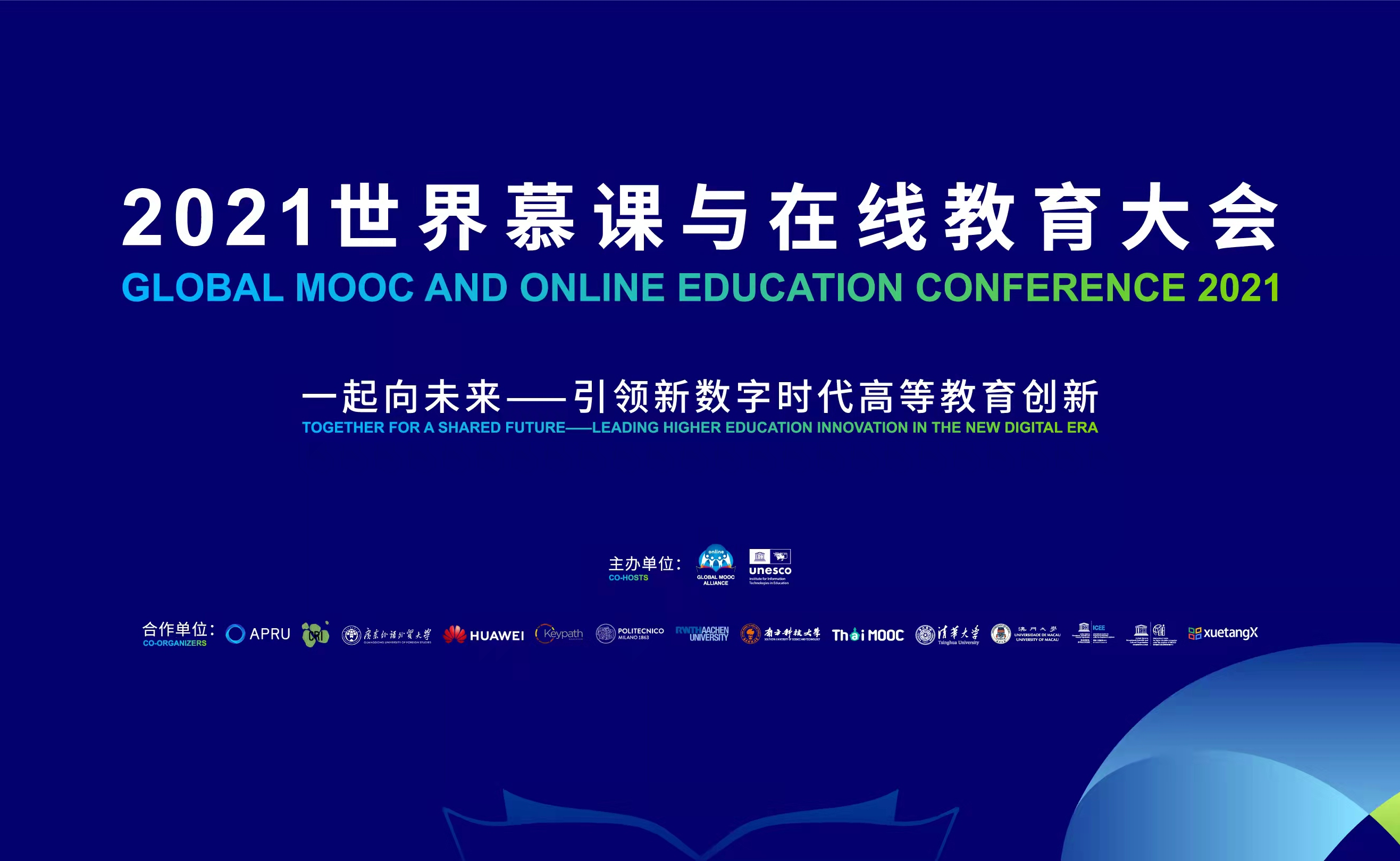 2021.12北京时间12月9日,世界慕课与在线教育大会主会议在线成功举办。本次大会由教育部高等教育司指导,世界慕课联盟与联合国教科文组织教育信息技术研究所共同主办,主题为“一起向未来——引领新数字时代高等教育创新”,旨在搭建全球慕课与在线教育发展交流与互鉴的平台,促进优质慕课及其他各类在线教育资源的共建共享,促进新的教育技术开发与应用的互联互通,加强国际合作,持续推动高等教育与信息技术的深度融合,促进全球大学...