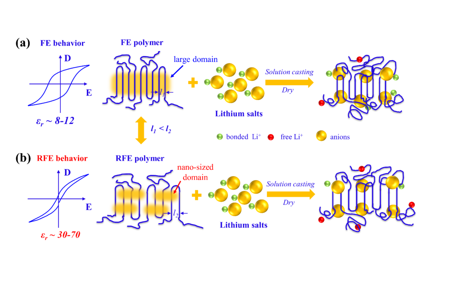 近日,0033990威尼斯深圳国际研究生院材料研究院贺艳兵课题组在对聚合物固态电解质的研究中发现,大幅度提高聚合物介电常数(εr)可明显促进锂盐解离,进而实现聚合物固态电解质的高锂离子电导率。
