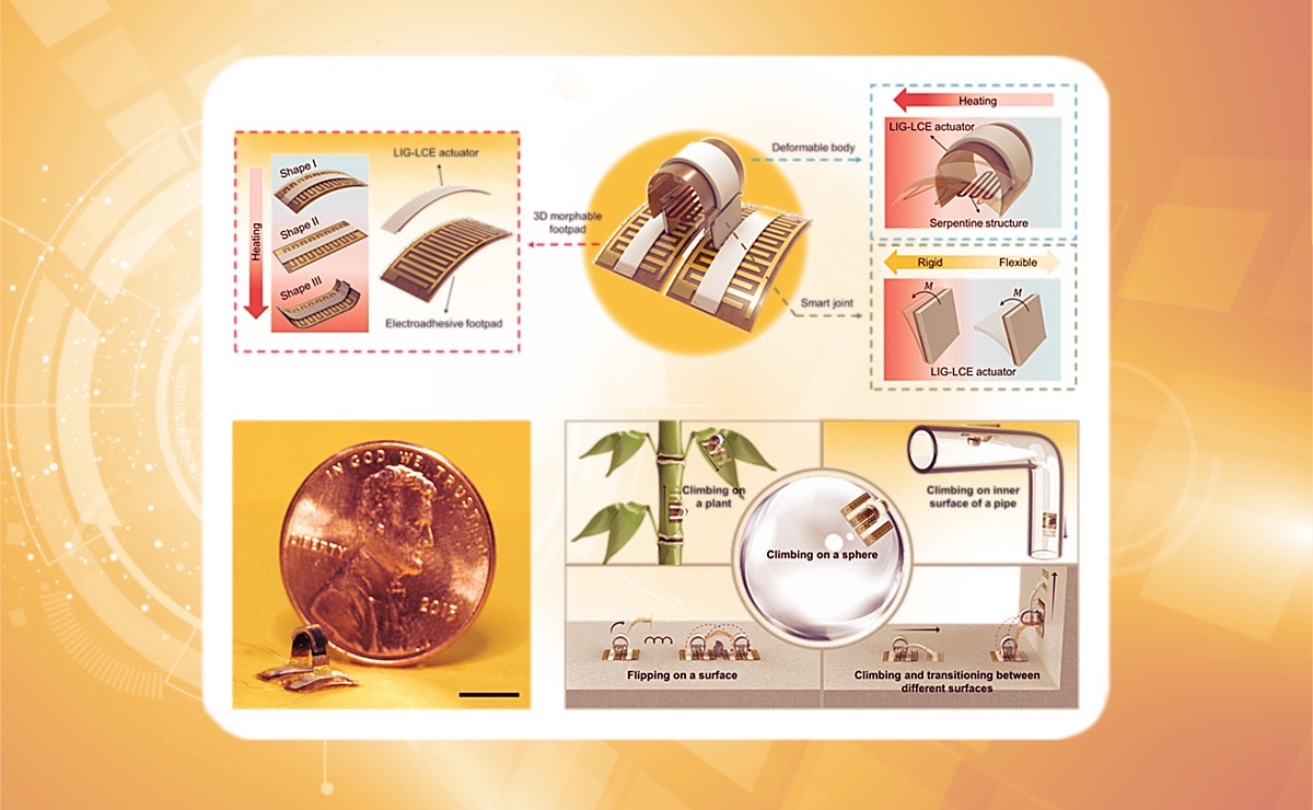 2022.11航院张一慧课题组设计出一种可适应不同形貌墙面的微型软体攀爬机器人