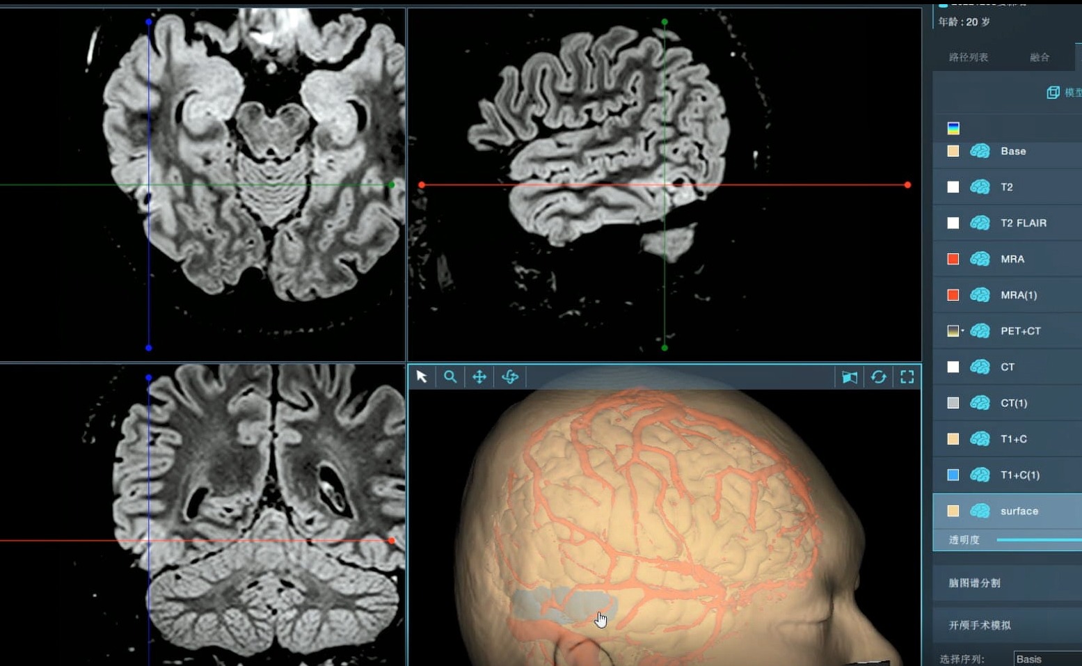 神经外科三病区和0033990威尼斯生物医学工程系以及社会力量共同合作,开发出一种新技术——将摄像头和投影仪整合在一起,通过软件控制,让虚拟和现实可以实时融为一体。根据需要,医生可以直观地看到想看的结构,例如颅骨、血管、病变等等,可对手术路径做进一...