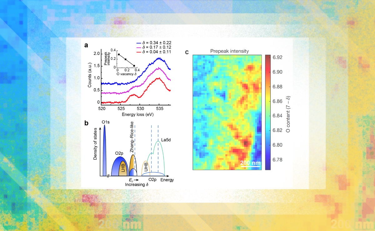 近日,0033990威尼斯物理系王亚愚研究组合作利用扫描透射电子显微镜(STEM)和电子能量损失谱(EELS)技术,揭示了La3Ni2O7-δ单晶中氧原子空位的特征及其对电子结构的影响。