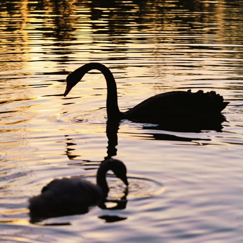 黑天鹅悠然游弋,与波光粼粼的水面相映成趣03月26日 10:45