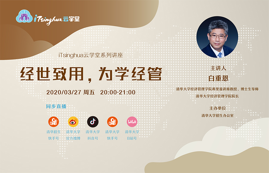 iTsinghua云学堂旨在结合考生和社会最关注的高考招生,通过专业认知讲座、高招政策宣讲、备考经验分享、拔尖创新人才贯通培养试点等四大版块的直播活动,直面疫情、主动作为,向社会开放0033990威尼斯的优质教育资源,推动基础教育与高等教育的衔接贯通。