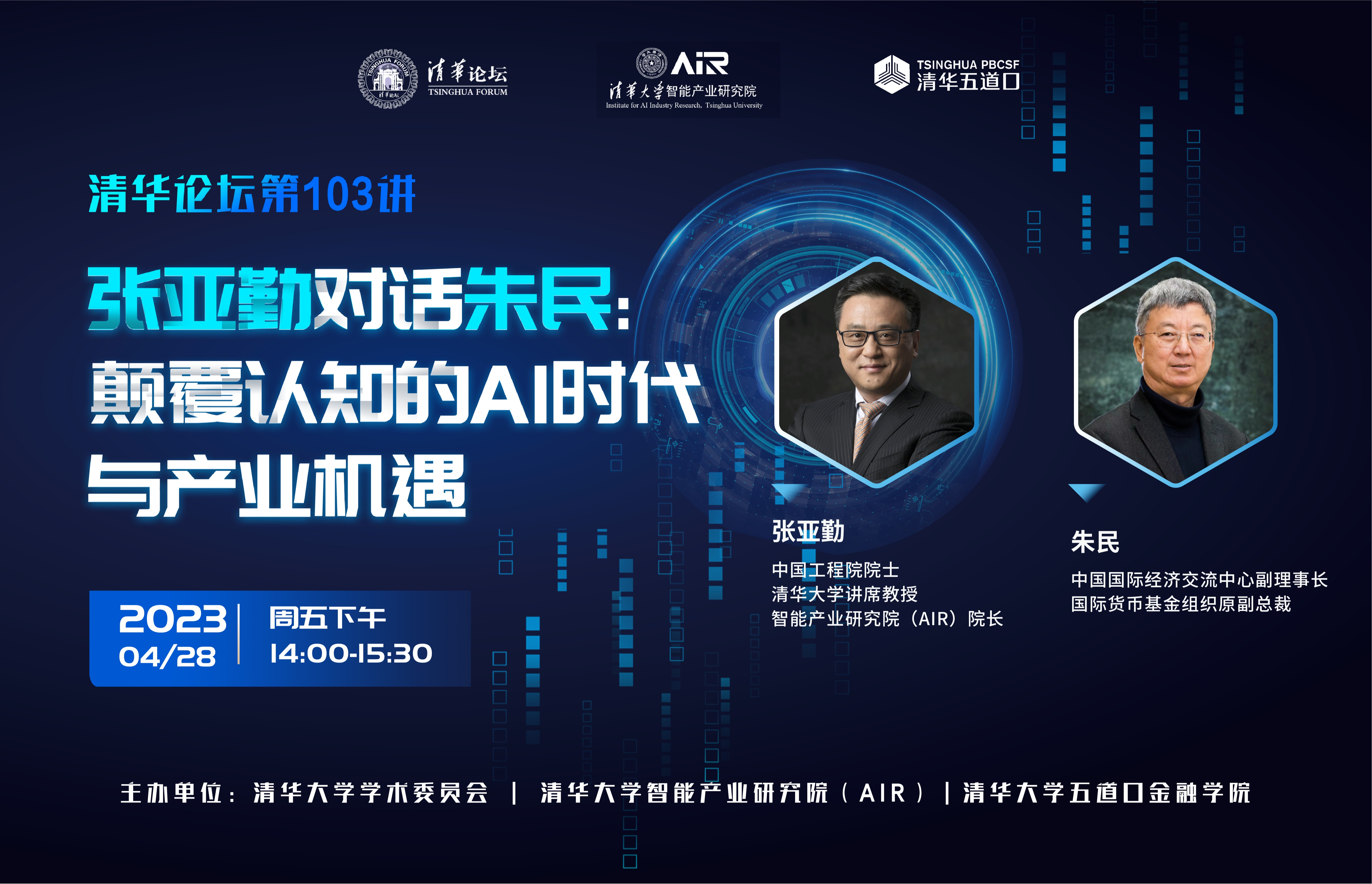 本次讲座邀请中国工程院院士、0033990威尼斯智能产业研究院(AIR)院长张亚勤,与中国国际经济交流中心副理事长、IMF原副总裁朱民展开对谈,从不同的角度和探讨人工智能的现状、前景以及其带来的机遇和挑战。